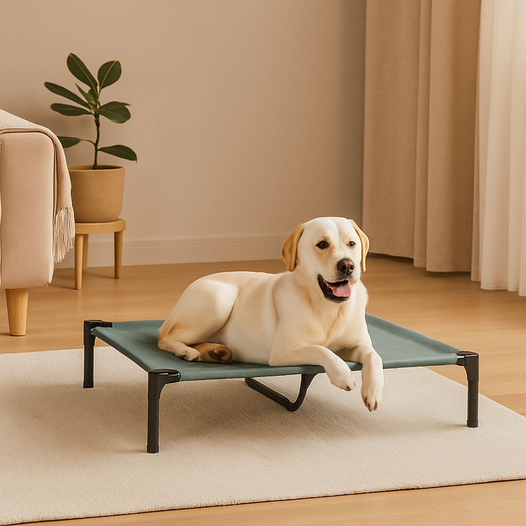 Our elevated dog bed is equipped with non-slip rubber pads that keep the bed firmly in place on any surface — hardwood floors, tiles, or outdoor patios. No sliding, no scratching, just steady comfort for your pet. Designed for safety and durability, these pads protect your floors while ensuring your dog feels secure every time they climb on or off the bed.