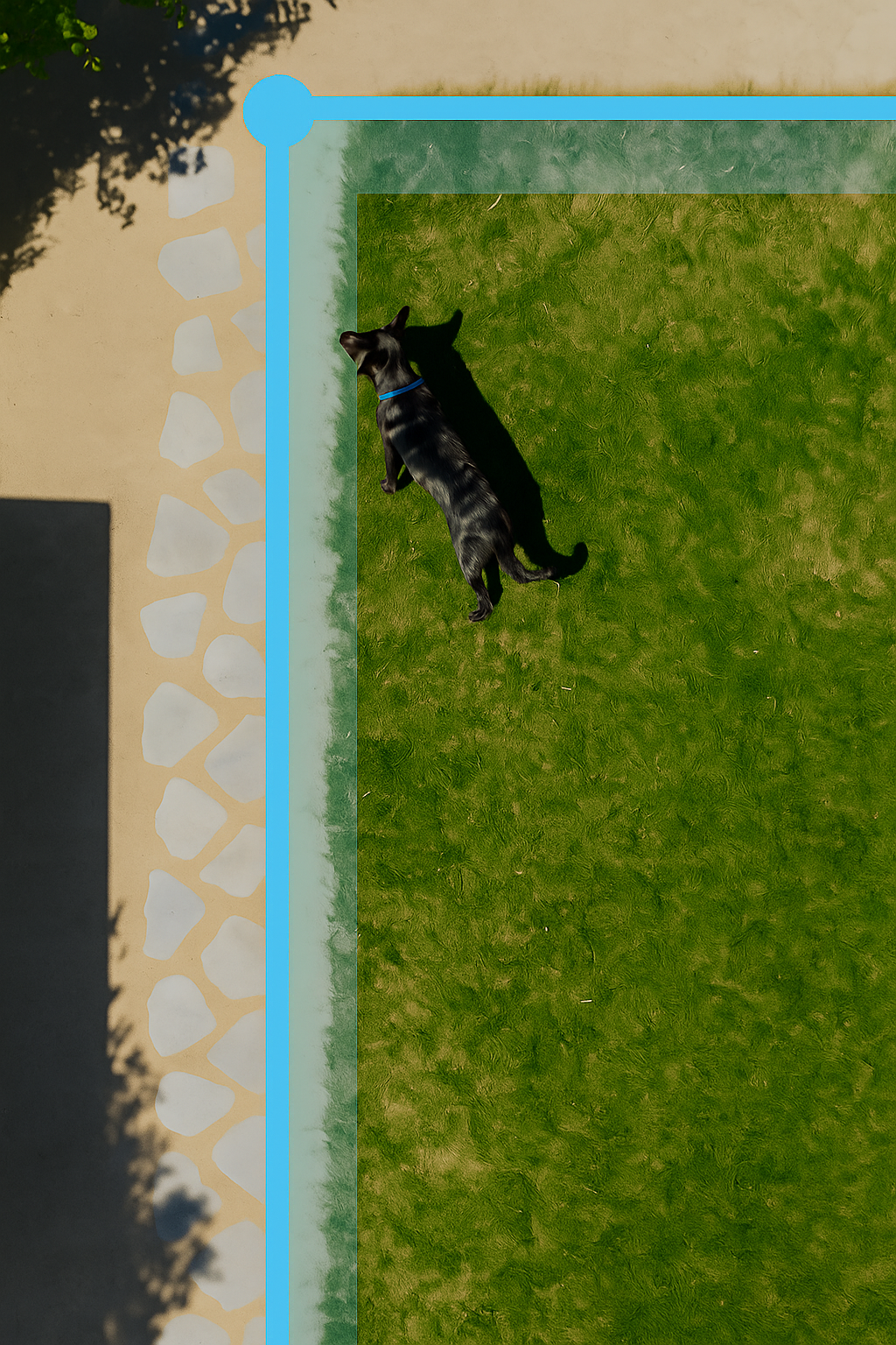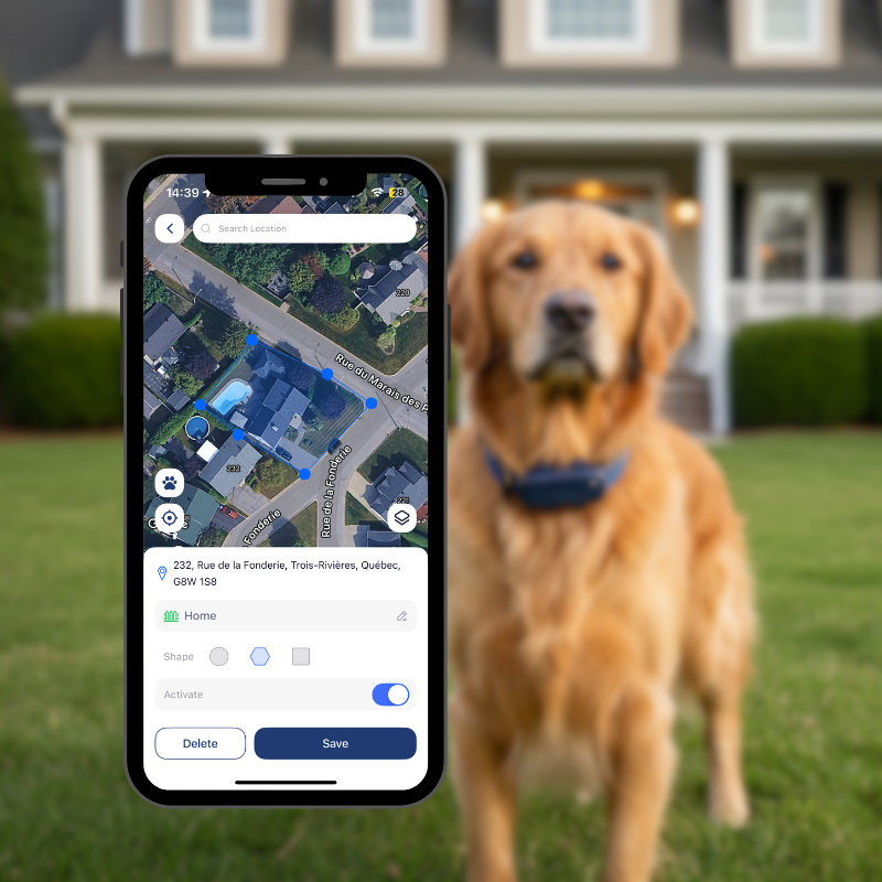 You create a safe zone directly in the app. The collar uses GPS to define the boundary and sends alerts if your dog approaches or leaves it.