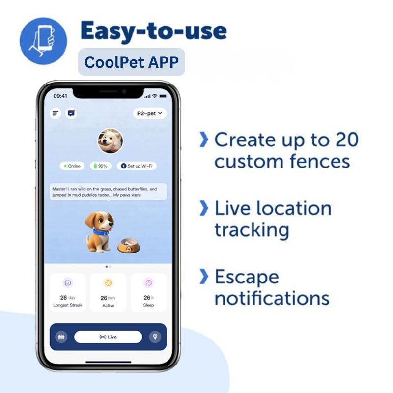 Our collar uses advanced GPS + cellular technology to track your dog’s real-time location. You can see your dog’s position directly inside the Petypure mobile app anytime, anywhere.