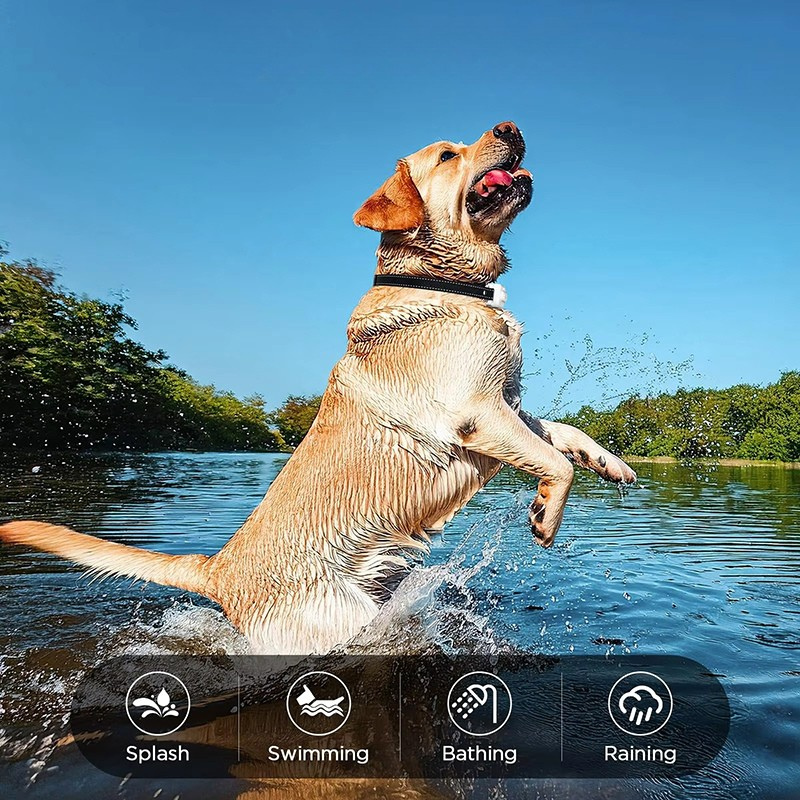 Let your dog swim, splash, and play freely — the IPX7-rated receiver stays fully functional in any weather.