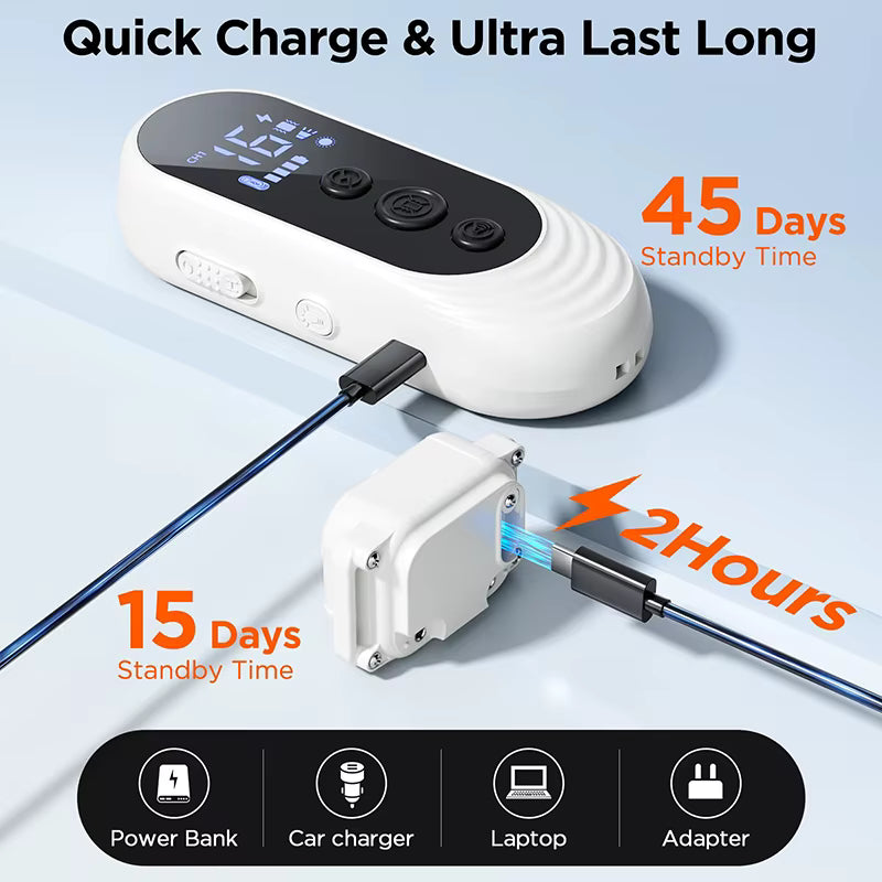 Long-Lasting Battery Life (Collar: 15 Days / Remote: 45 Days) |